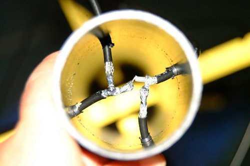 Detalle de la parte inferior - la antena fue construida con cable 'fino', tipo RG-59