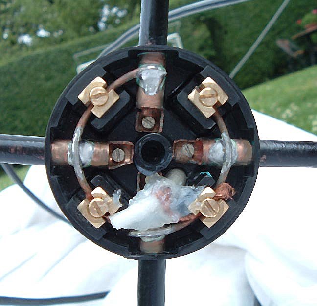 No es facil de tomar una foto... pero los elementos horizontales arriba y abajo aseguran señal cuando el satellite pasa justo arriba.