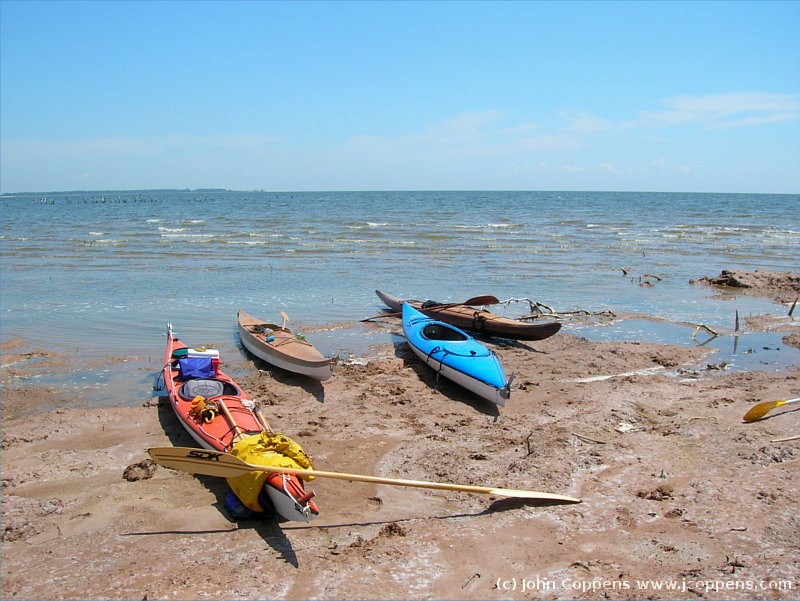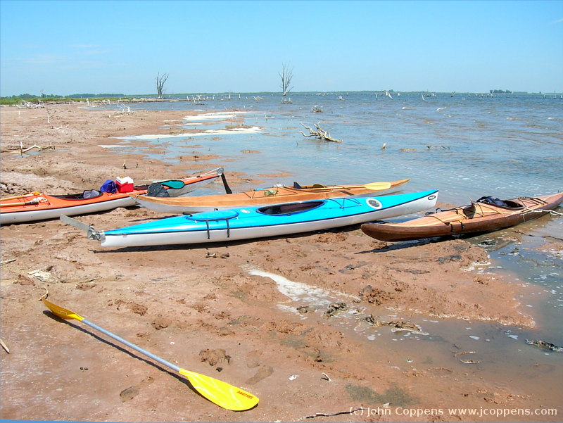 Un buen consejo - lleven calzado. La costa era tán caliente que casi no se podía caminar! Aquí el kayak está apoyado en el barro 'curativo'.