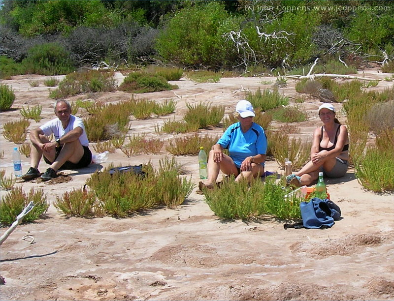 Cerca de las 4 de la tarde, decidimos volver - el calor era casi insoportable (estimo cerca de 40 grados). El Windguru falló completamente con la nubosidad (predijo 80%, y no llego a 5!). El calor era tal que después de cargar los kayaks de nuevo, tuvimos que refugiarnos con el auto a la sombra de unos árboles... A pocos km de Miramar, camino a Marull (gracias Erio, por las indicaciones), paramos en una YPF y buscamos bebidas frescas (todo el agua/bebida nuestra se habian ajustados a la temperatura ambiente...)