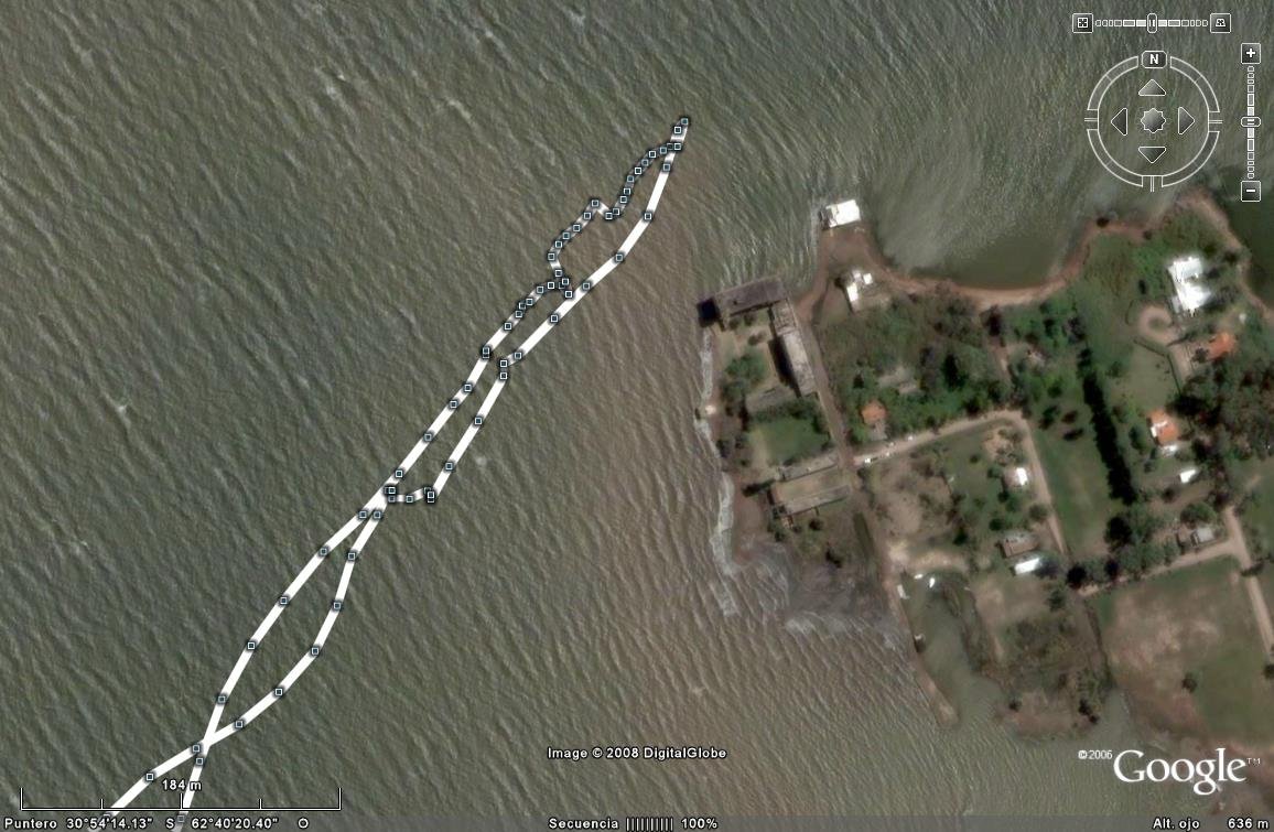 El comportamiento del kayak era, esperadamente, muy similar al anterior, ya que el diseño es el mismo. El redondeo de los cantos trajó una muy leve disminución de la estabilidad inicial, pero sigue increiblemente estable. Por otro lado, parece haber aportado notablemente a la velocidad... La proa queda mucho mas bajo que la versión anterior (quizás ayudada por 5 litros de agua potable, y comidas varias).