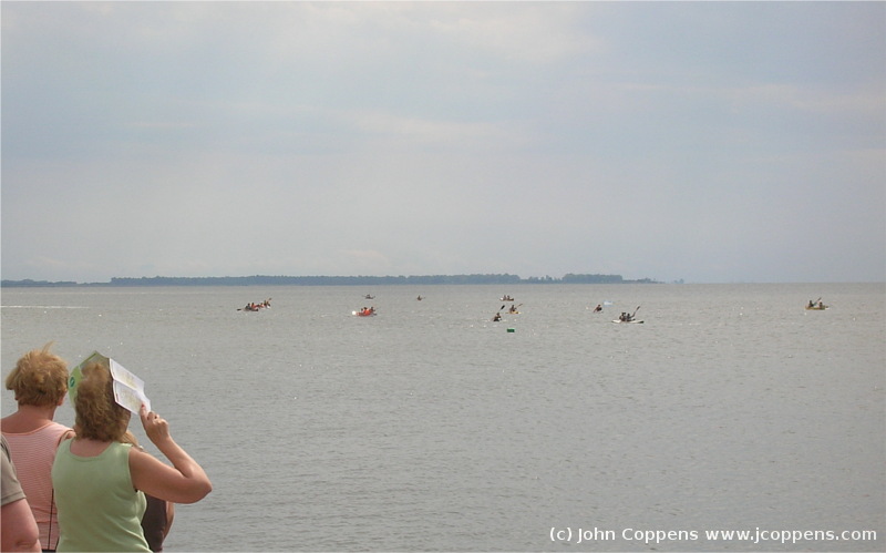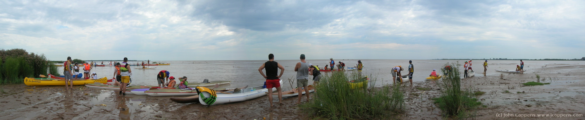 de 200 personas incriptas, pero la mayoría navagaba en canoas